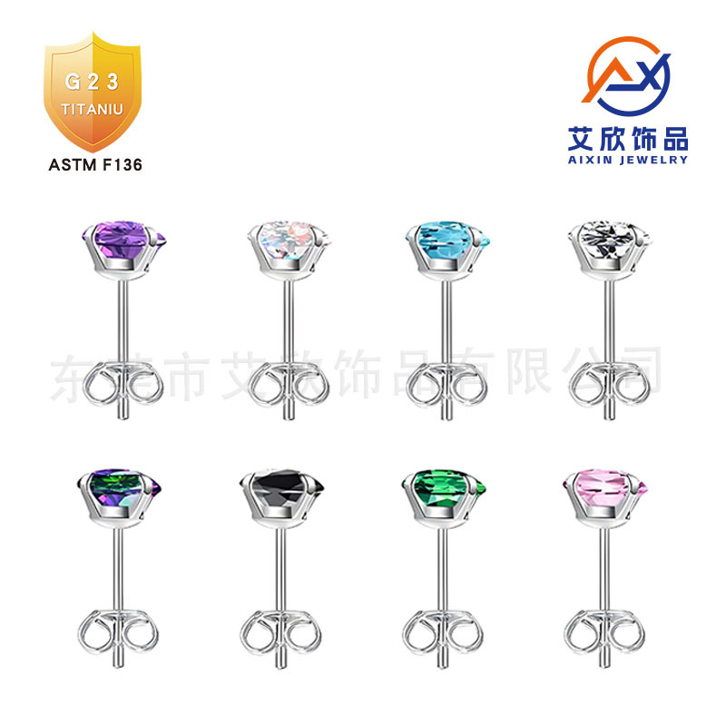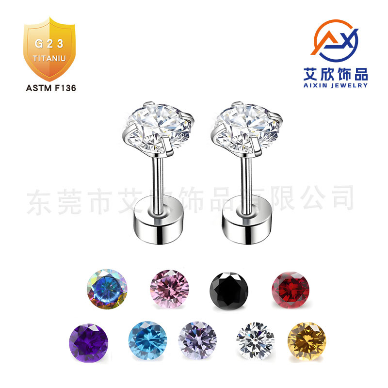 F136 チタン合金ジルコンイヤリング、一体型 4 爪耳骨ネジ、G23 チタン耳ピアス、睡眠用耳介ネジなし