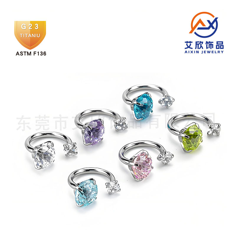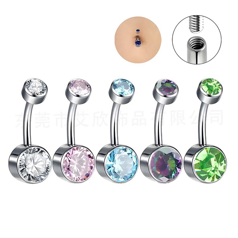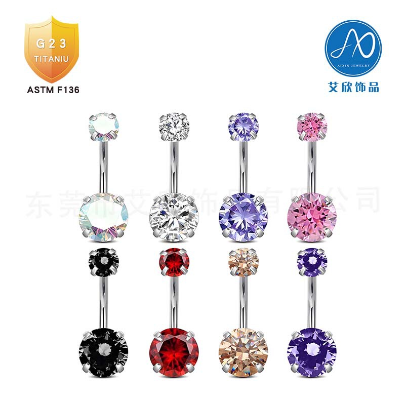 アマゾンは国境を越えて欧米で販売されている新型のダブルジルコン臍釘臍ボタンチタン合金臍環人体穿刺卸売り
