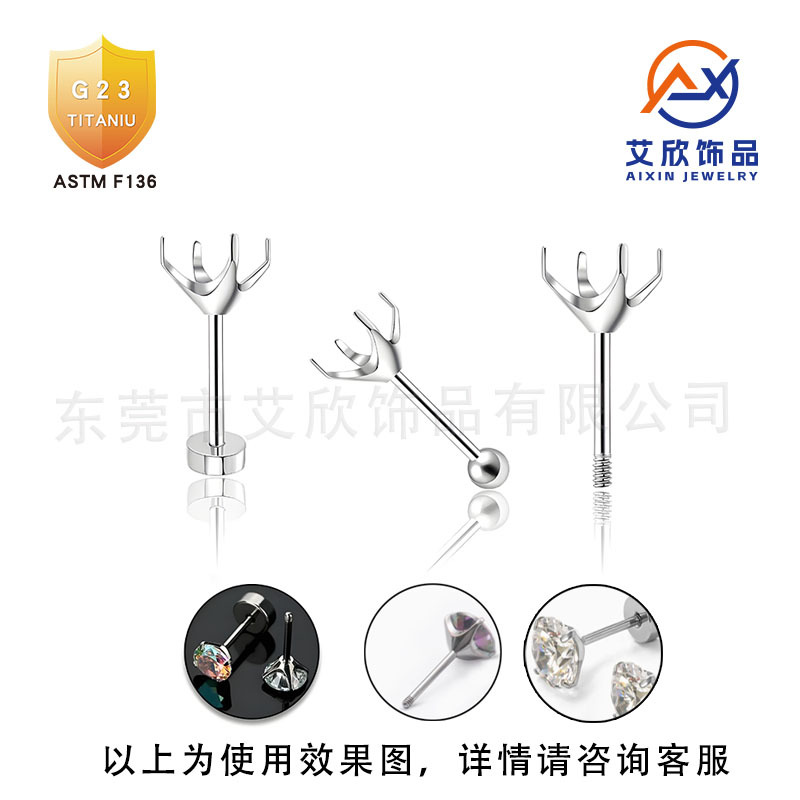F136 チタン合金ジルコンイヤリングホルダー Huazi ホルダー雌ねじストレートポール 4 爪空ホルダー DIY ピアスジュエリーアクセサリー