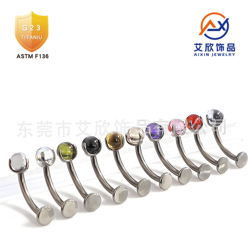 G23 チタン合金内歯眉毛ネジジルコンオパールカーブロッド平底耳スタッドボディピアスへそリングジュエリー卸売