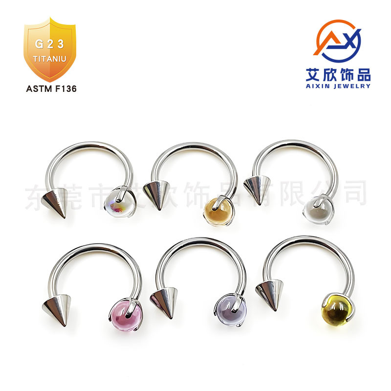 G23チタン馬蹄リング側辺球尖錐クロスボーダー鼻中隔鼻環イヤリング唇環人体穿刺アクセサリー