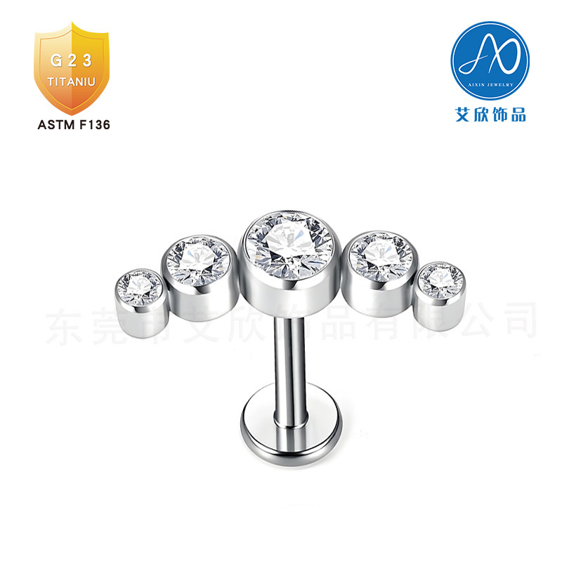 G23チタン鋼穿刺アクセサリージルコン内歯唇釘耳骨釘F136耳穴耳ウォーム釘平底唇鼻釘