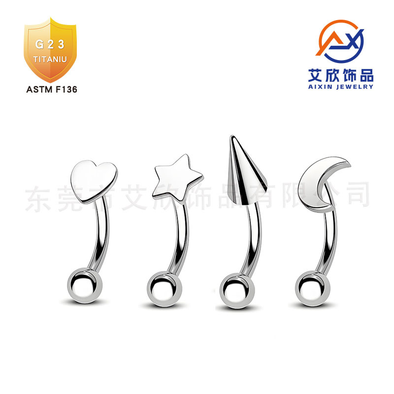 リップネイル、スターラブ、ムーンチップ、カーブロッドイヤリング、G23チタン合金舌ネイル、ボディピアスジュエリー、耳骨ネイル