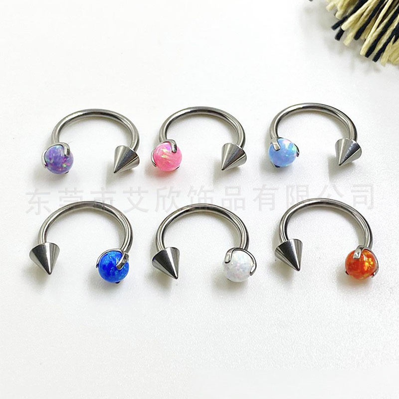 F136 チタン合金 3 爪オパール尖ったコーン鼻リング G23 チタン馬蹄ロッド c ロッドジルコン鼻ネイルリップリングピアスジュエリー