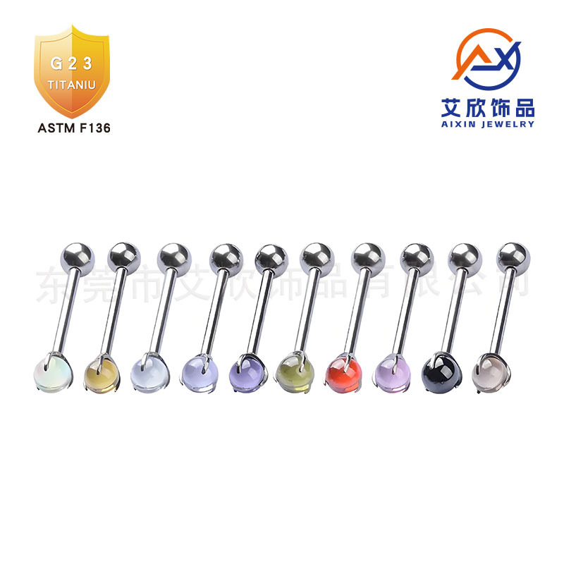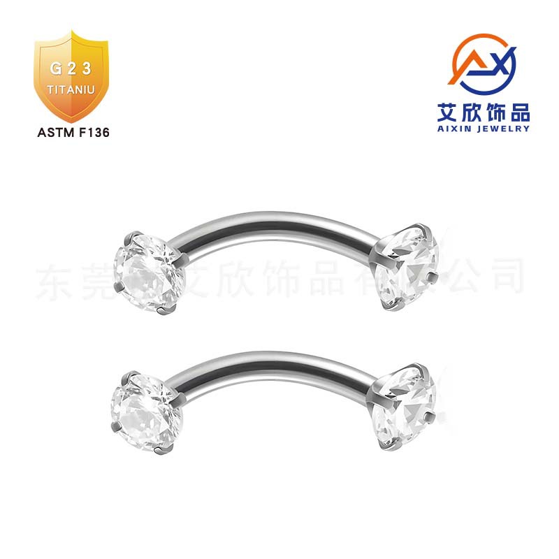 F136チタン合金ダブルヘッドストレートジルコン玉舌釘欧米クロスボーダー人体穿刺アクセサリーチタン耳橋卸売り