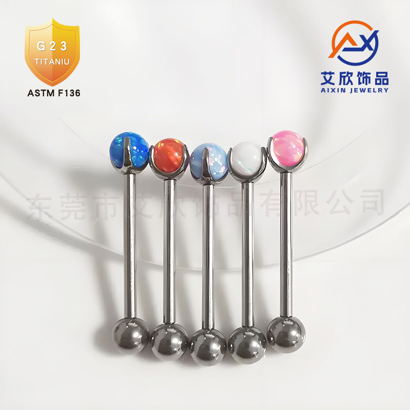 G23 チタン合金舌ネイルオパール三爪オパールボール F136 チタンボディピアスジュエリーリップネイル耳骨ネイル