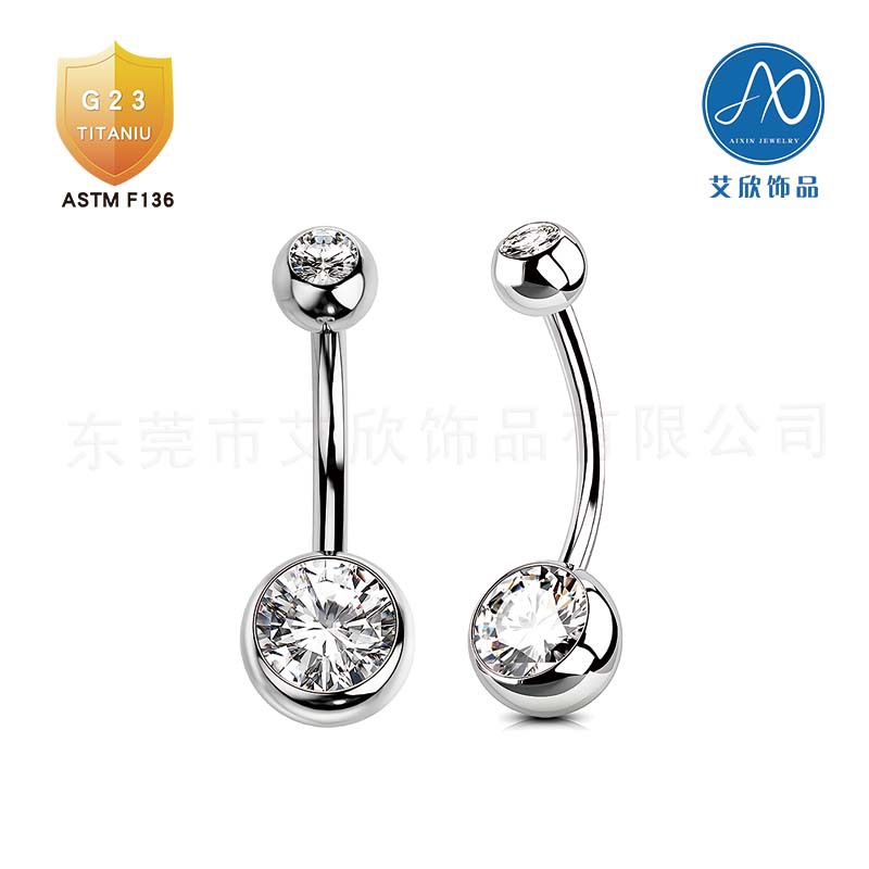 新品G23純チタン臍釘ASTM-F136ジルコン臍ボタン欧米人体刺青ピアスアクセサリー