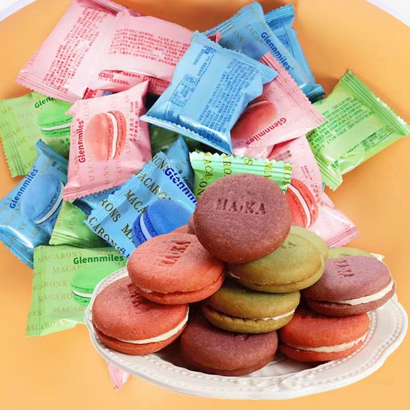 マカロンサンドビスケット個包装卸売フルボックス子供用丸型朝食軽食人気スナック