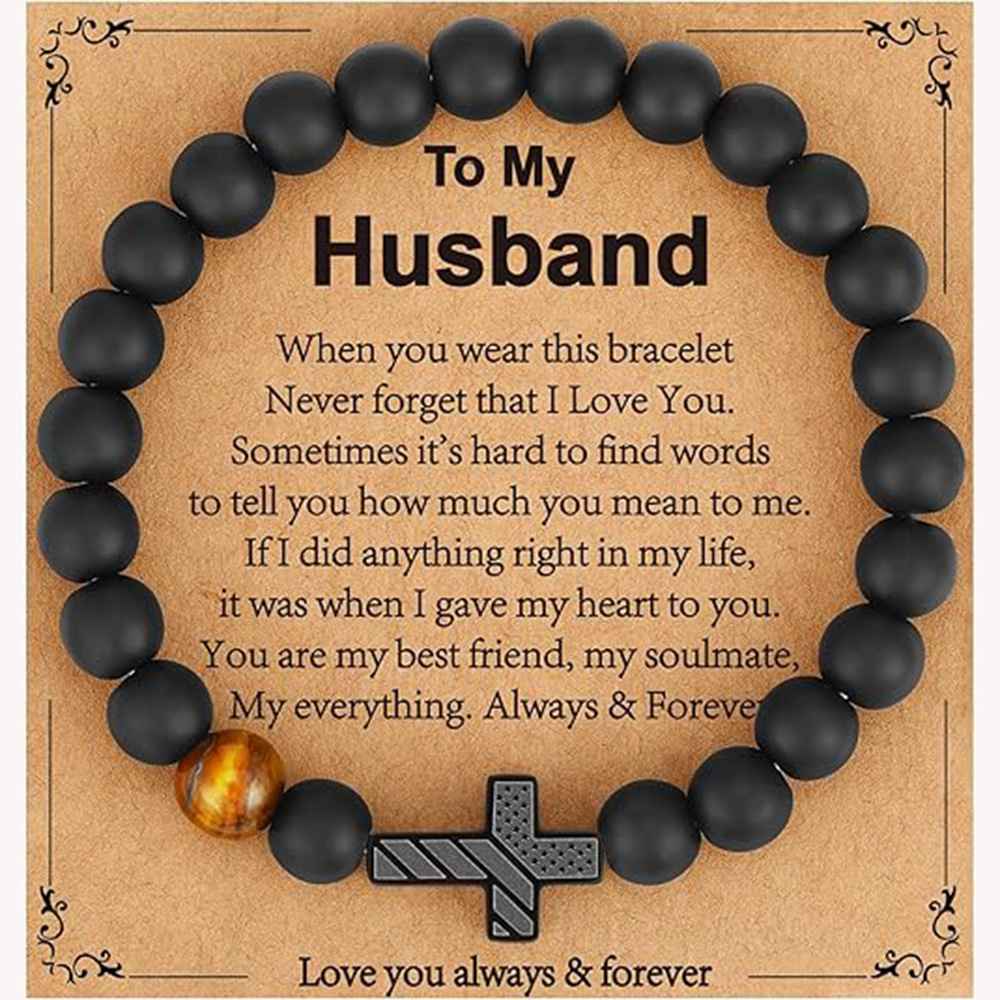 クロスボーダーブラックフロストタイガーアイストーンブレスレットクロスペンダントギフトビーズブレスレットブラックダイヤモンドサークルクロスホリデーブレスレット