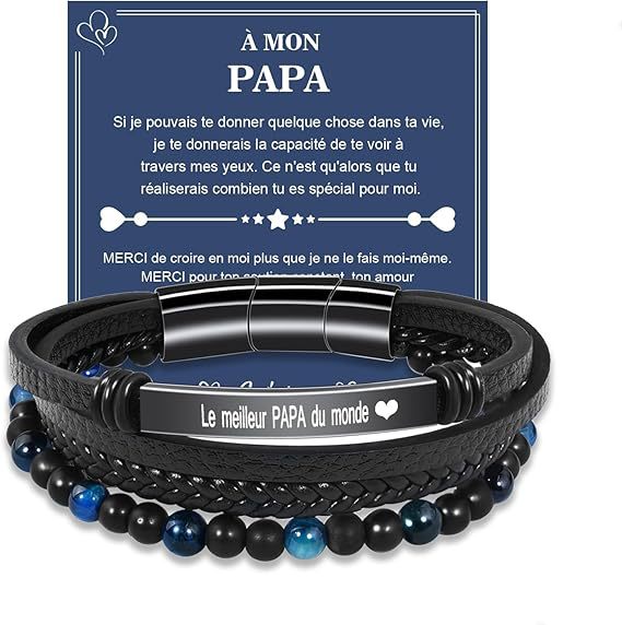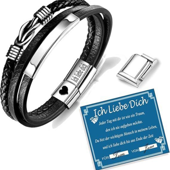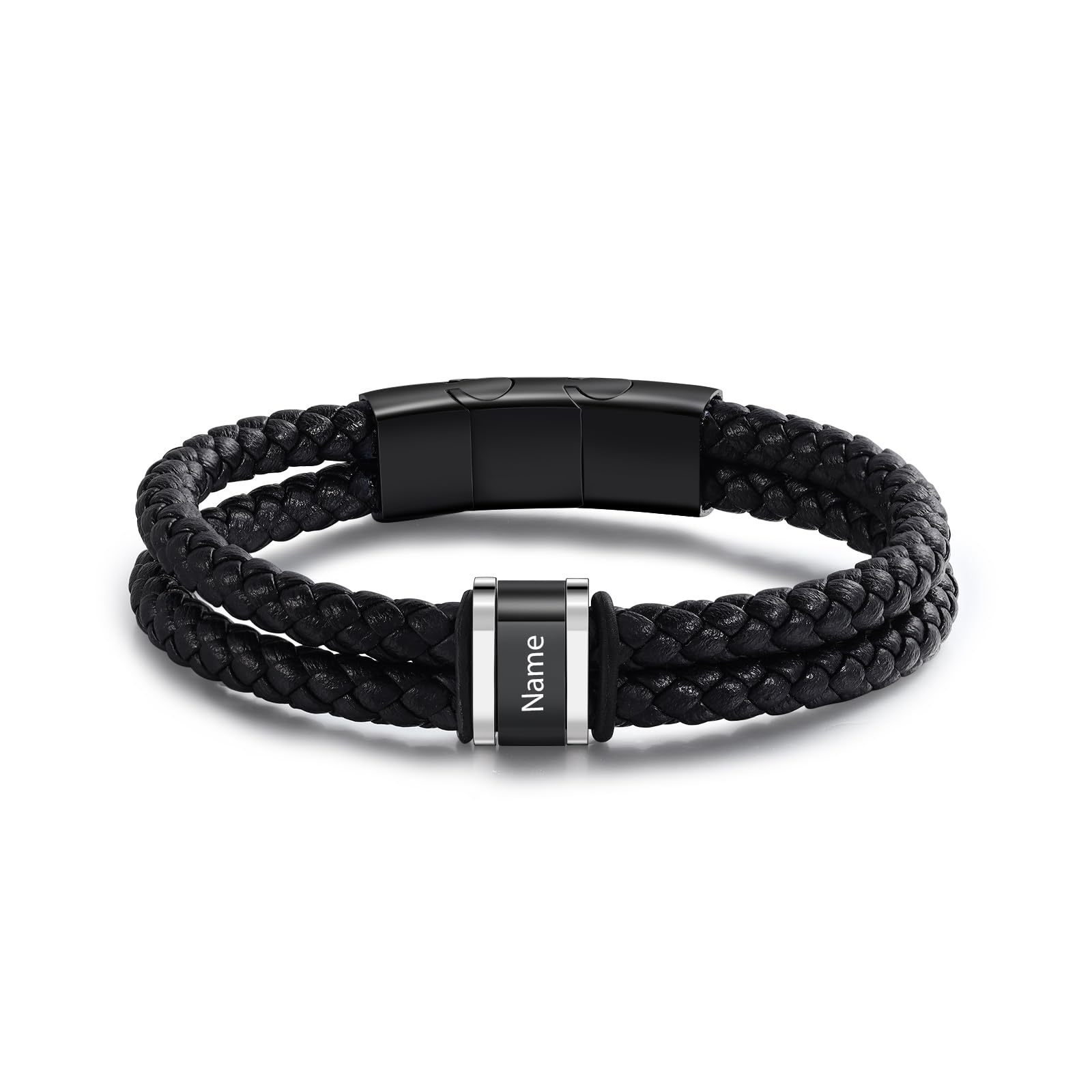 Amazon パーソナライズされたブレスレット 彫刻された男性の名前ブレスレット 編まれたレザーブレスレット 父の日 バレンタインデー ギフト