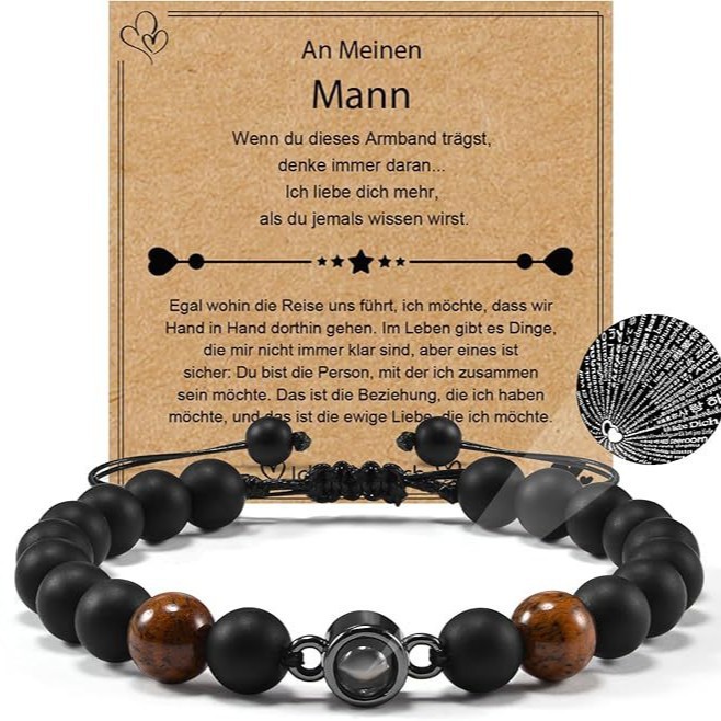 100 言語投影石ブレスレットつや消し石カードブレスレット男性用息子、父親、カップルホリデーブレスレット