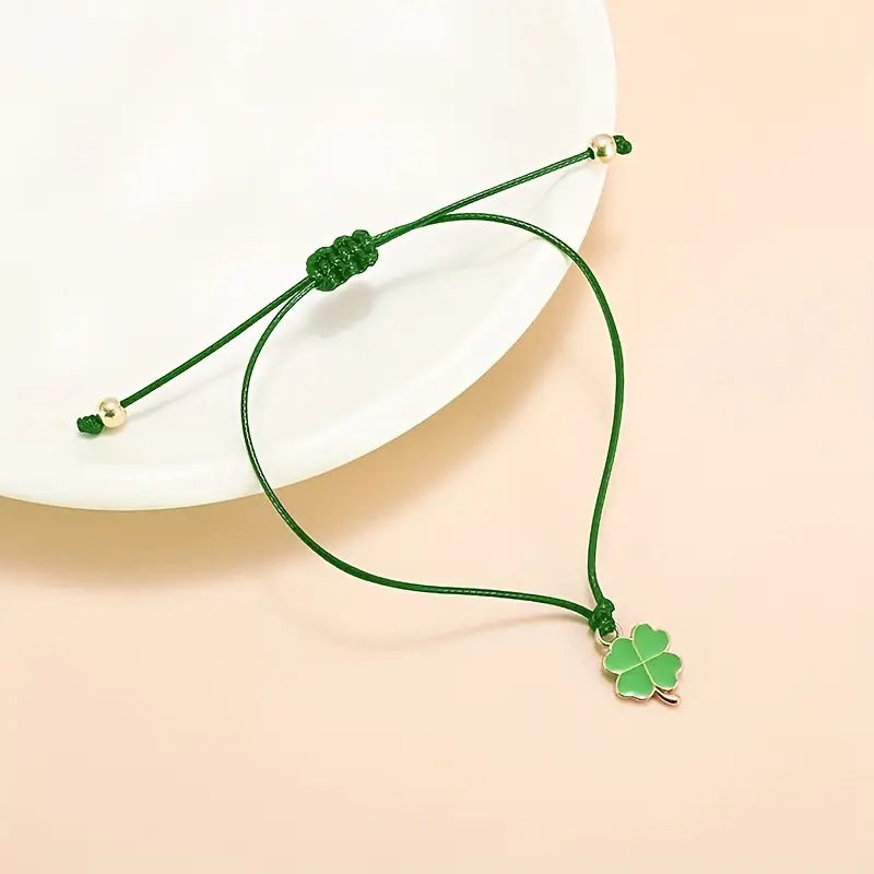 欧米の国境を越えた新製品の緑の四つ葉のクローバーの幸運な編み手の縄は手の黒い縄のブレスレットの日常の通勤を調節することができます。