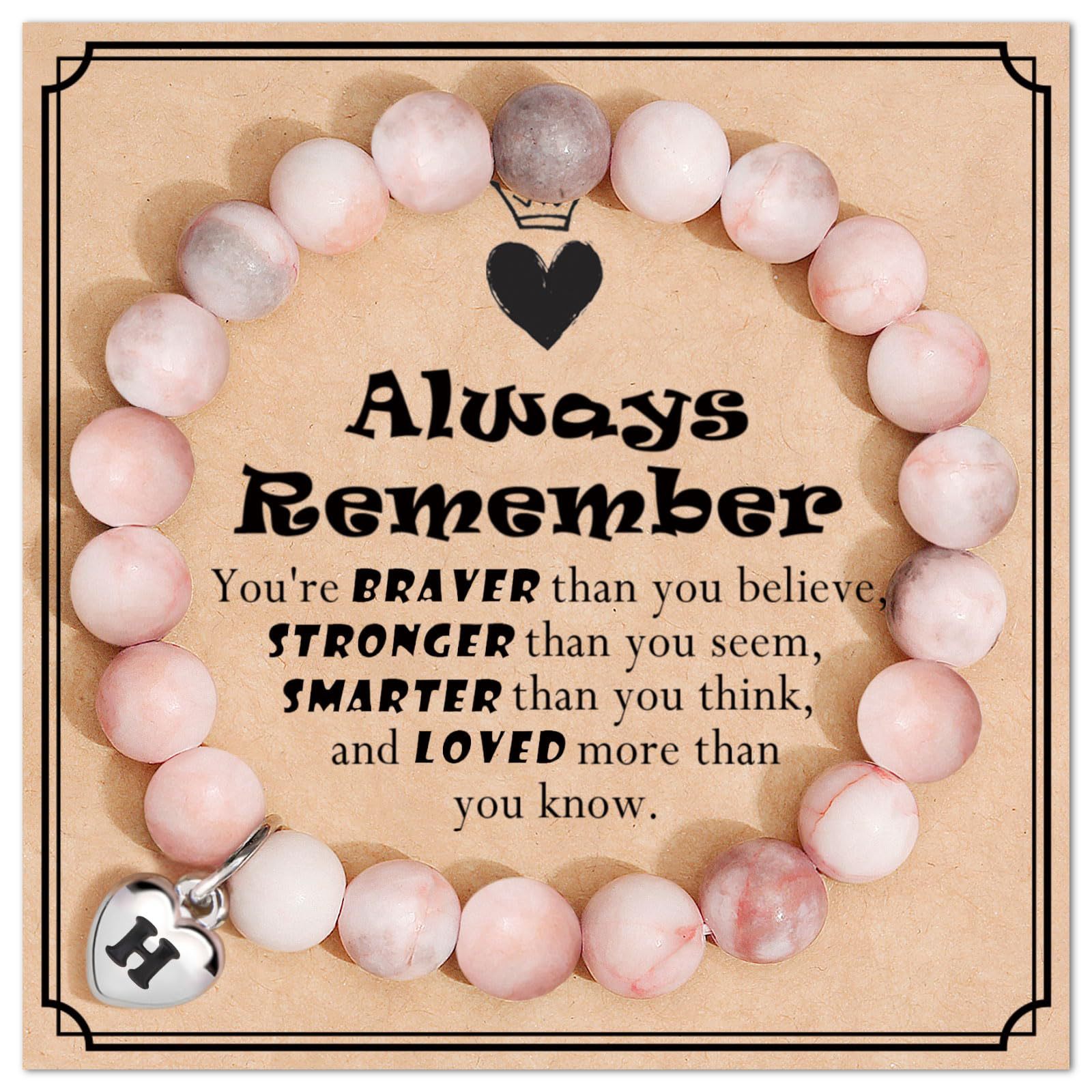 国境を越えたチタン鋼ハート型ペンダントビーズブレスレット8mm粉シマウマビーズ手串26文字ブレスレットアクセサリー