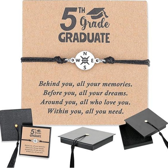 欧米の越境卒業シーズンの男女の羅針盤はブレスレットを編んでクラスメートの先生に簡単なカードの贈り物のブレスレットを送ります。