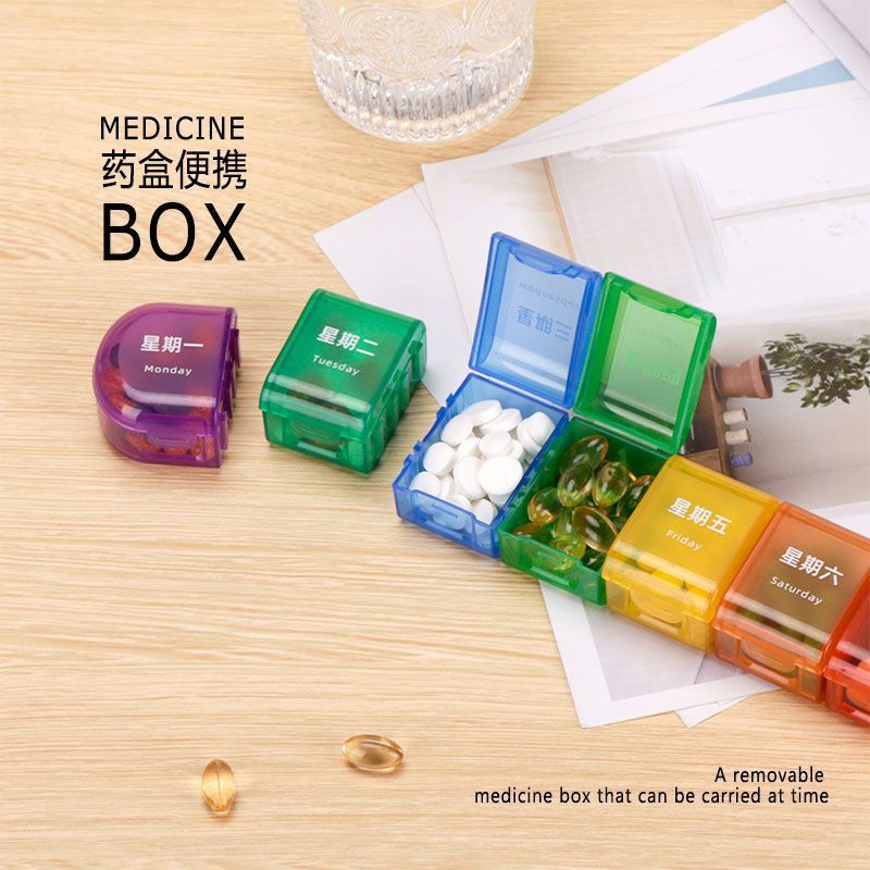 取り外し可能な7コンパートメントウィークリーストレージストリップ、1週間用ピルボックス、ミニポータブルピルボックス、整理ボックス