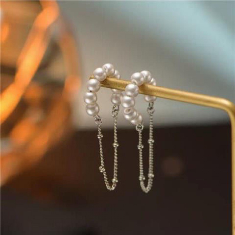 ピアスのないイヤークリップ、パールタッセル、女性用、甘い女の子、妖精、ショートイヤーカフ、イヤリング、工場直販、卸売
