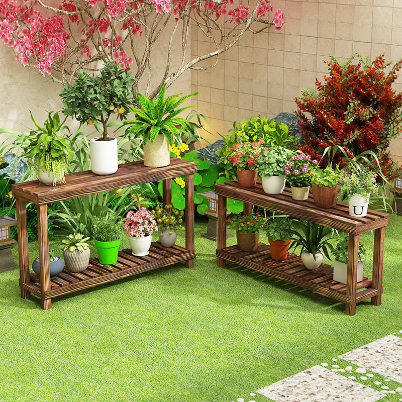 無垢材フラワースタンドスツールロングベンチリビングルームホームフロアスタンド1層屋外バルコニー防錆木製はしご型収納ラック