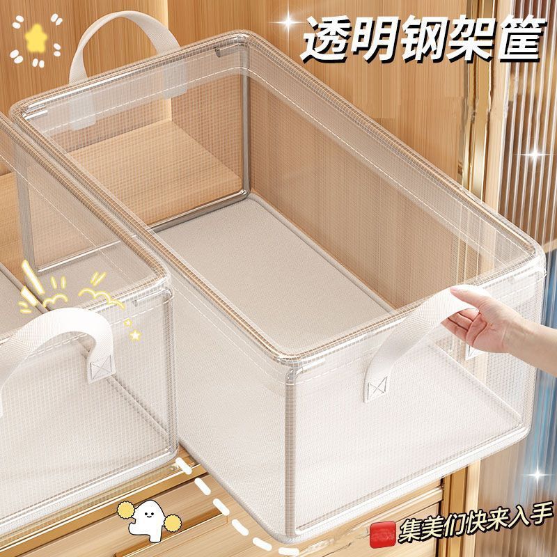 透明衣類収納ボックス秋と冬の折りたたみ収納バスケットアーティファクトホームワードローブ衣類とズボンの層状整理ボックス