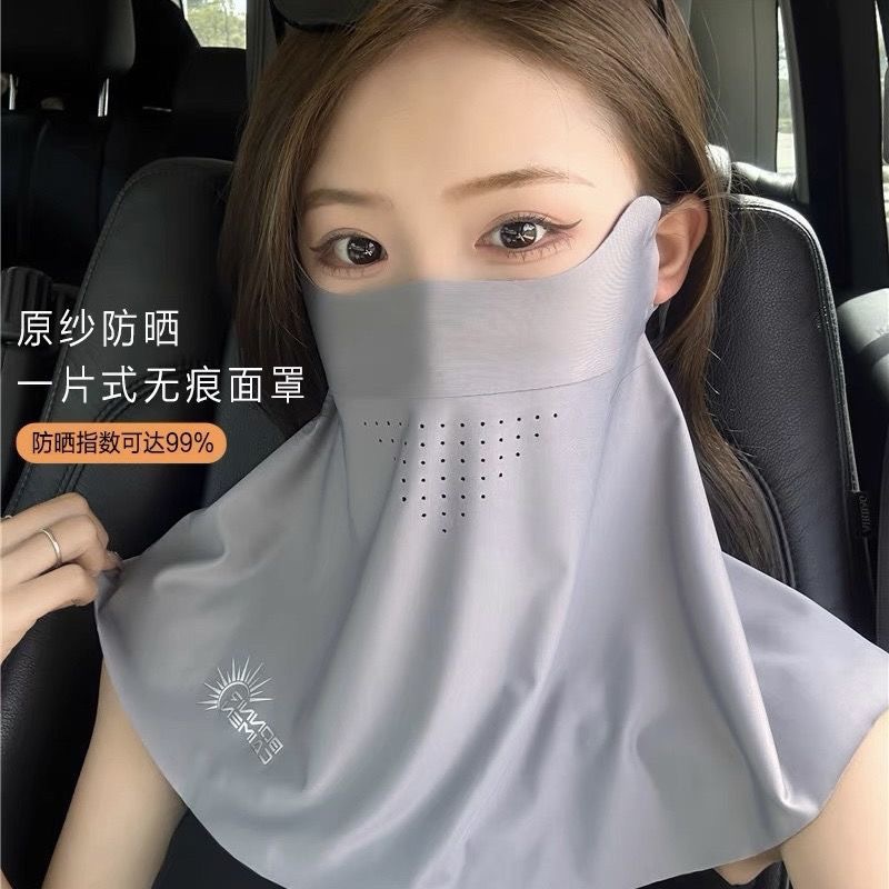 女性用日焼け止めマスク、フルフェイス、紫外線防止、夏用アイスシルクシームレス日焼け止めマスク、首をカバー、サイクリングサンシェードフェイスマスク