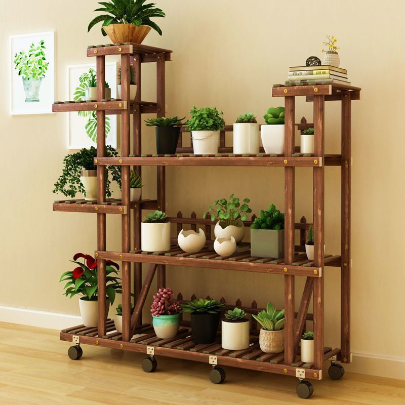 フラワースタンド無垢材多層リビングルーム新しいバルコニー収納ラックポトス多肉植物床屋内家庭用植物植木鉢ラック