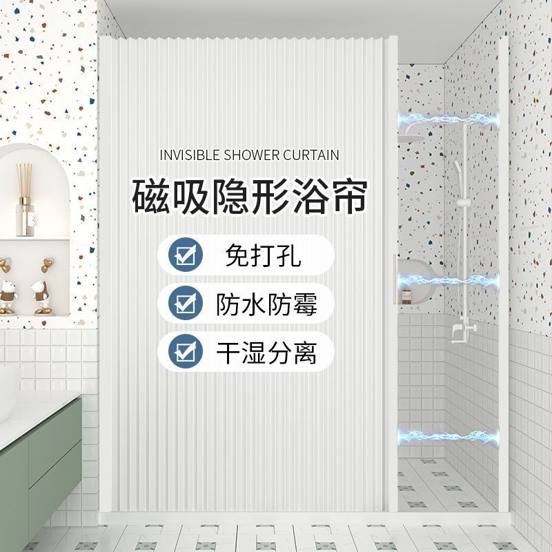 目に見えないシャワーカーテン磁気パンチフリー折りたたみ伸縮式乾湿分離浴室シャワートイレパーティションドロップシッピング
