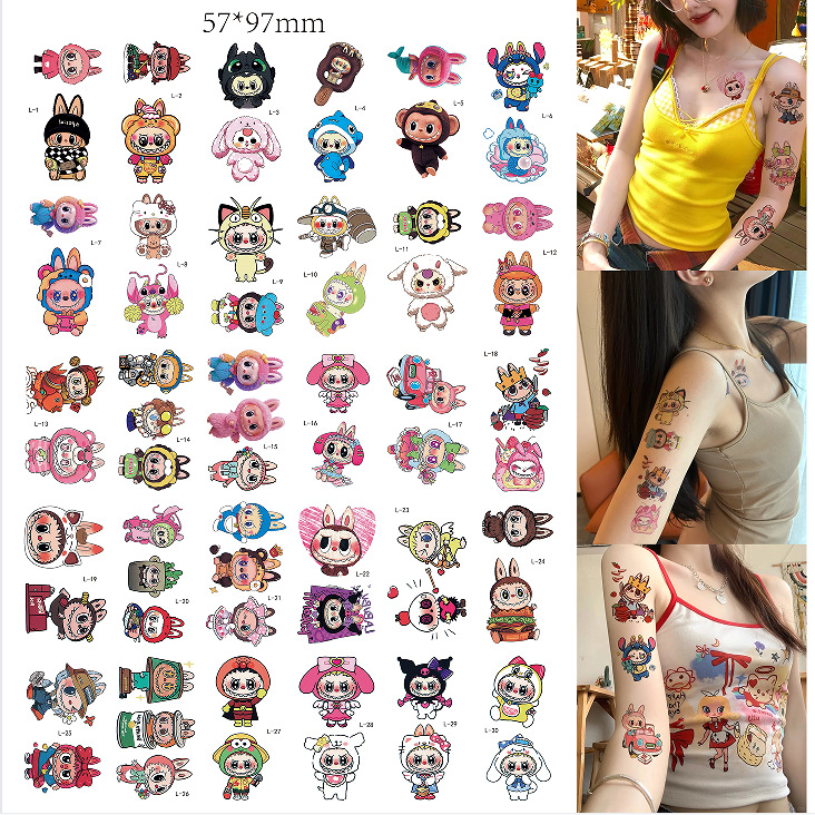 漫画かわいい落書きクリエイティブガールカラー水転写ステッカーアーム一時的なラブブタトゥーステッカー