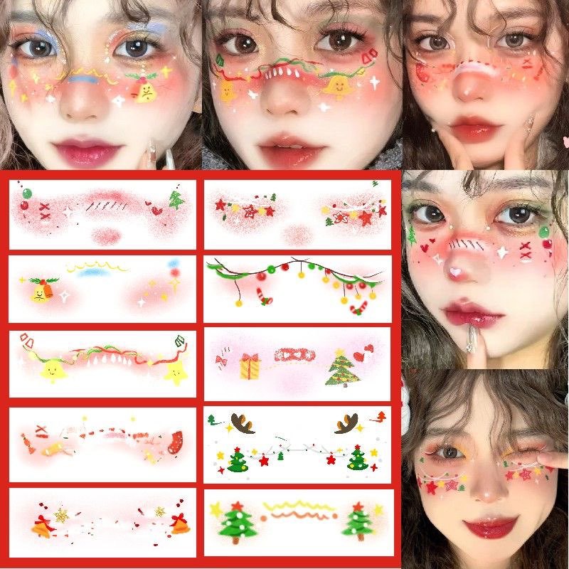 メイクアップフェイスステッカー、スノーフレークタトゥーステッカー、カスタムメイドの赤い愛の漫画新年メイクアップ、かわいいハロウィーンタトゥーステッカー