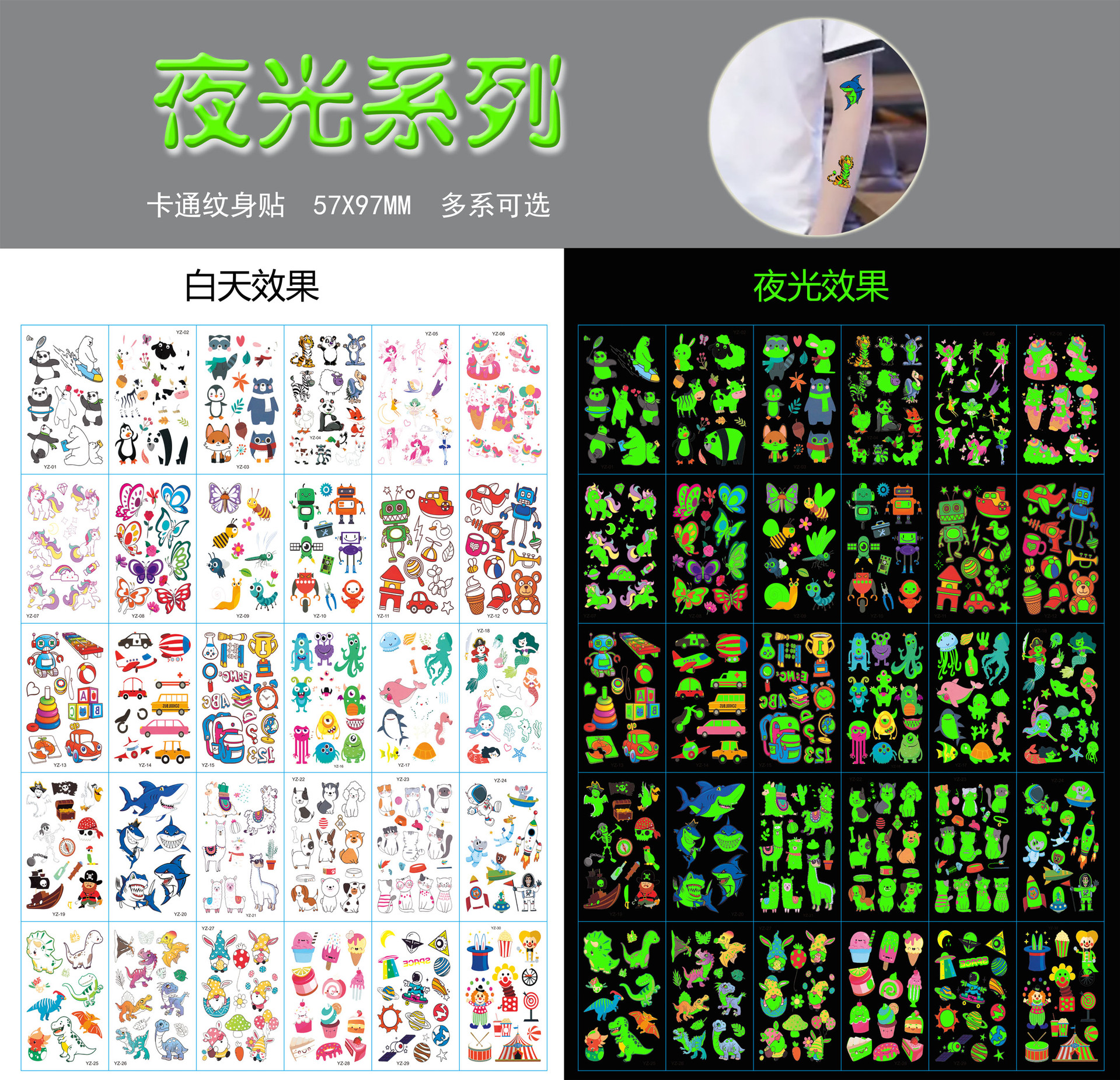 国境を越えた夜光粉スポット卸売りメーカーがカスタマイズして、アニメのかわいいサメ恐竜のタトゥーを描いた