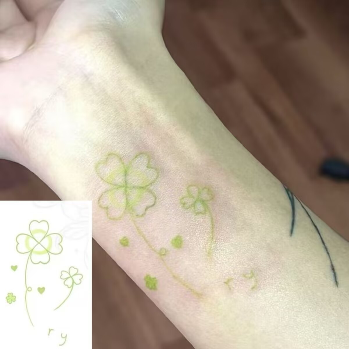 新しい幸運な四つ葉のクローバーはシンプルで清新なカラーの刺青を貼っています。