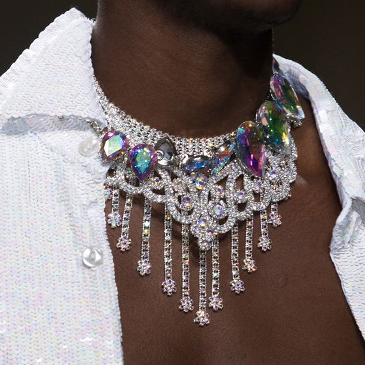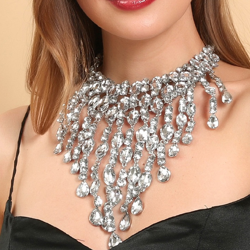 欧米のクロスボーダーのファッションの新型の大きい水滴のドリルのフリンジネックレスは誇張していっぱいにドリルの舞台のショーの街の撮影のアクセサリの女性を演じます。