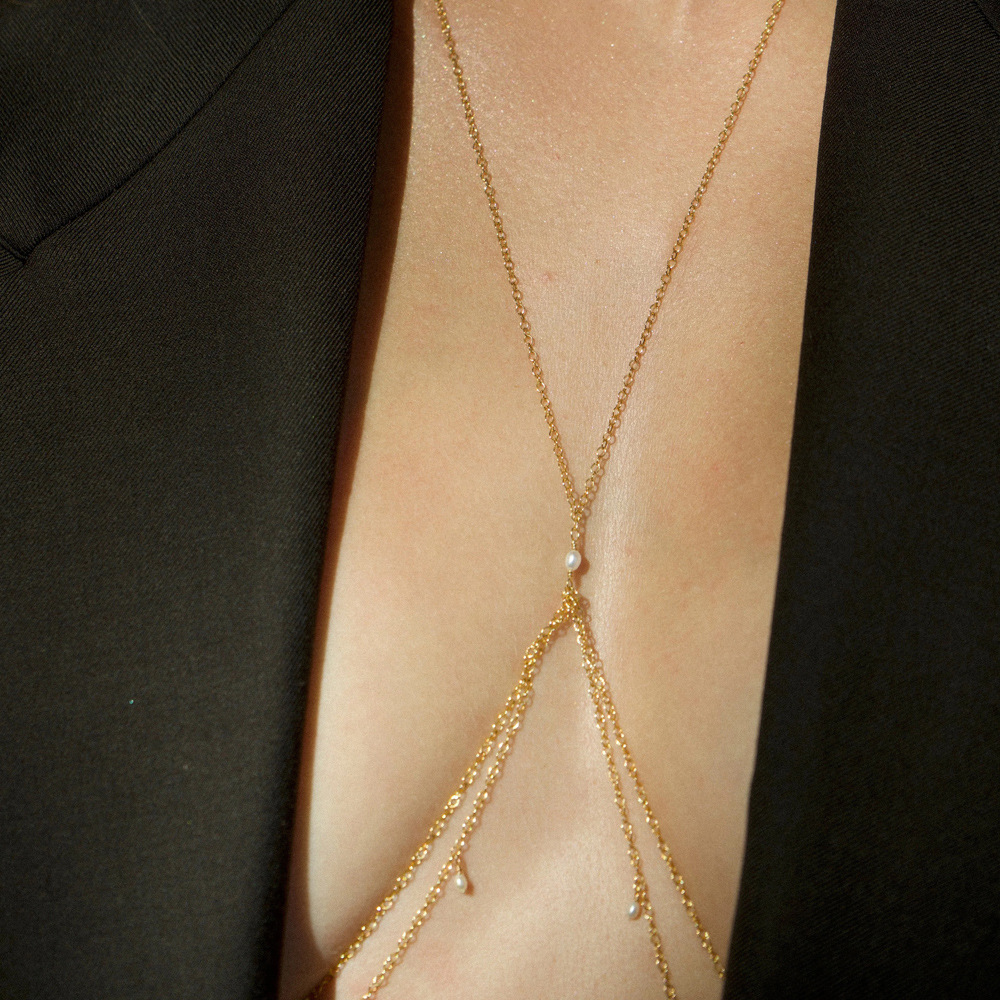 国境を越えて人気のある新型シンプルな模造真珠バックチェーンの大衆デザインファッションの洗練された気質がbody chainになっている