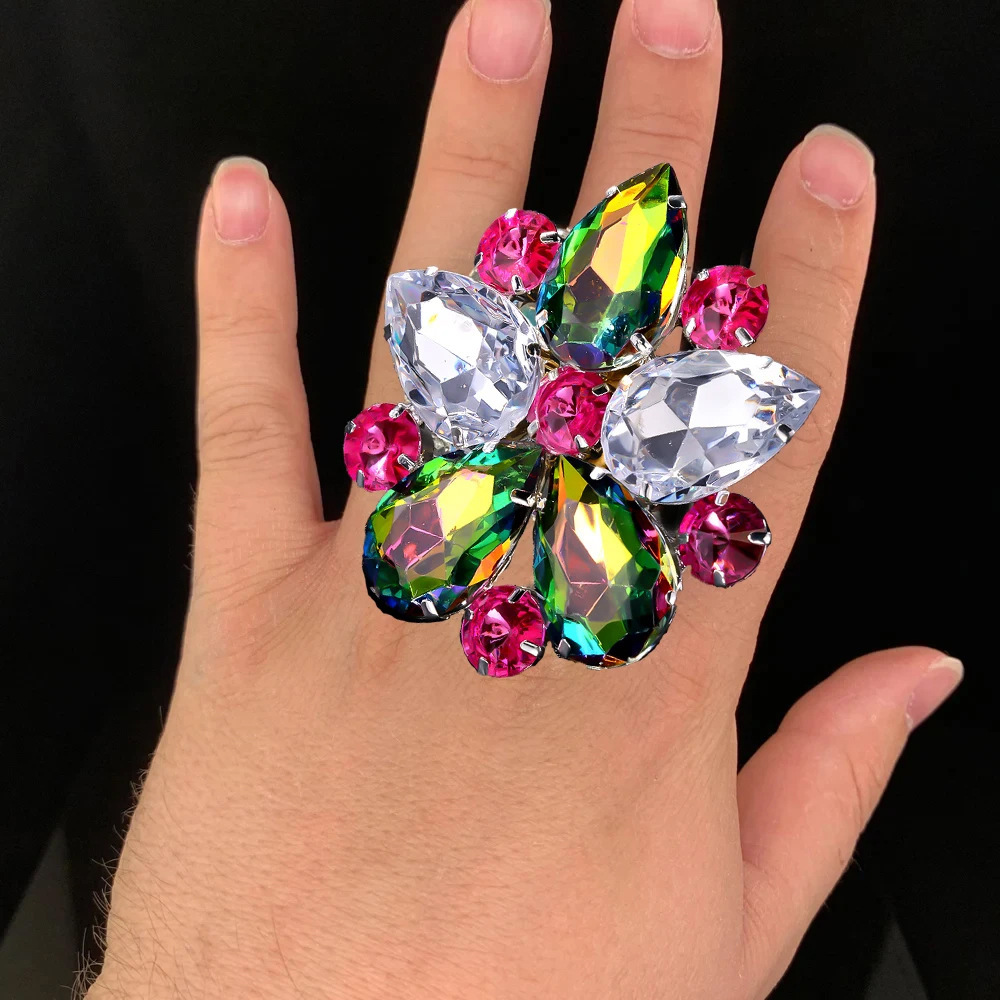 クロスボーダーの人気カラードリルの指輪は個性的な大きさを誇張しています。