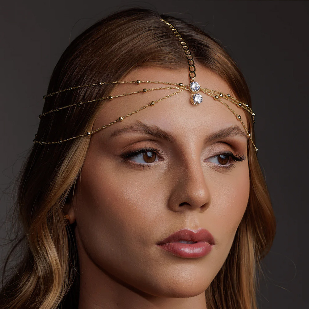 クロスボーダー単層水滴頭飾りボヘミアン風シンプルな百合ドリルの額チェーンアクセサリー女性hair chain