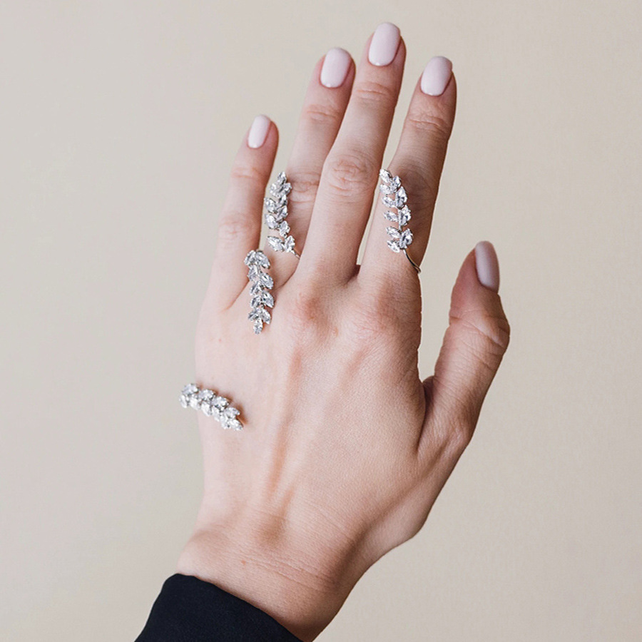 女性の個性的なジルコンの指輪の開口部のデザイン感があります。