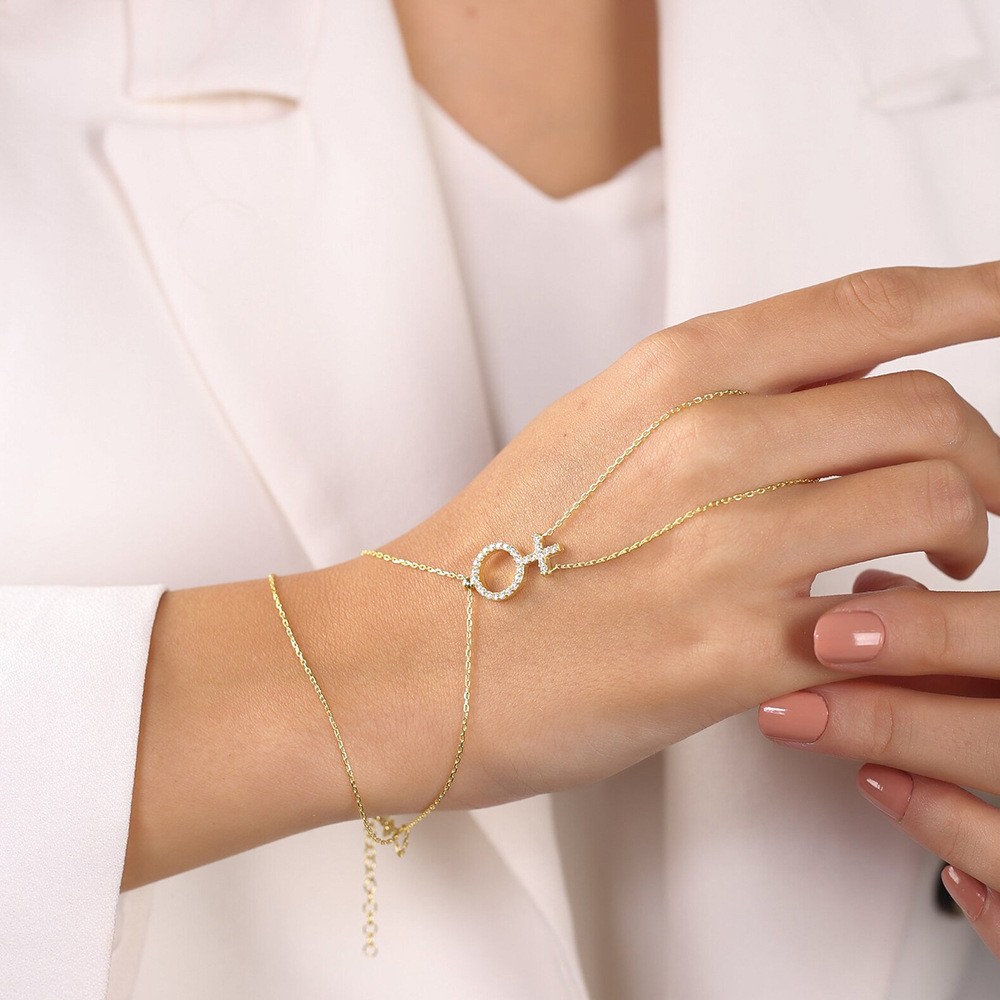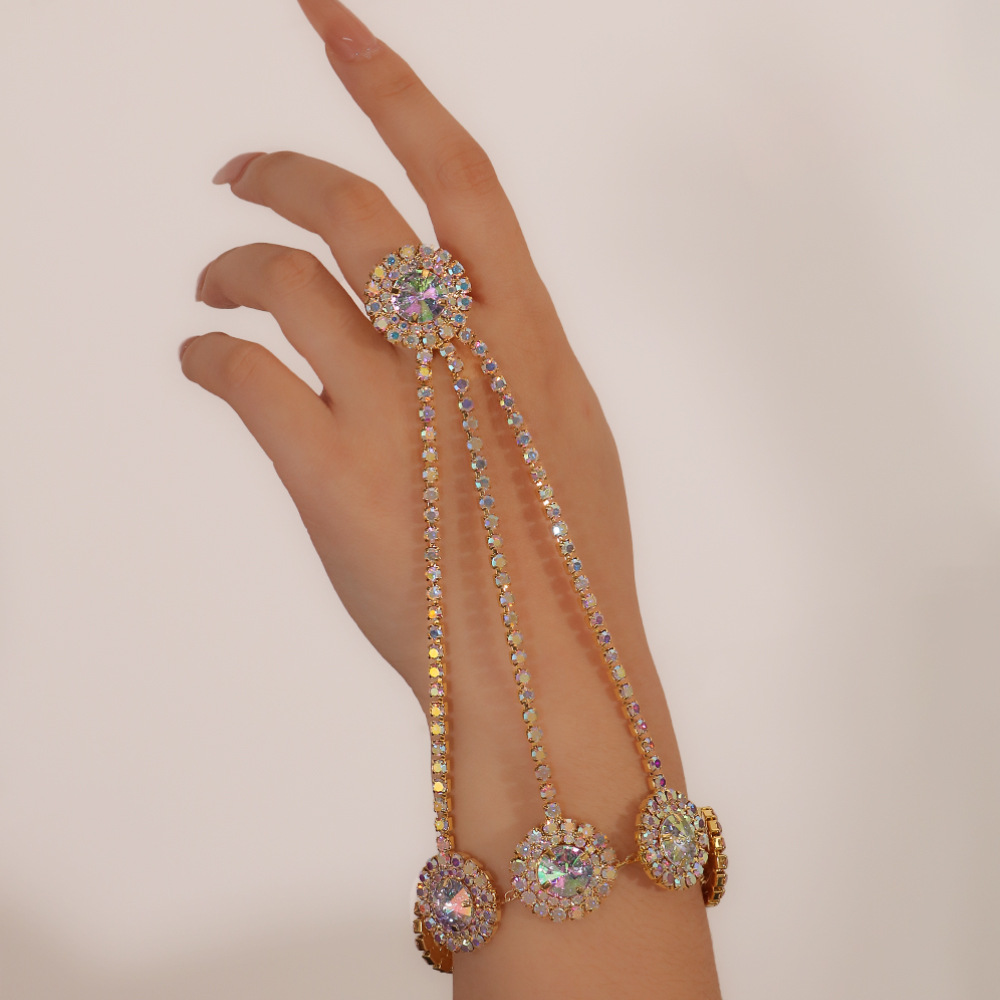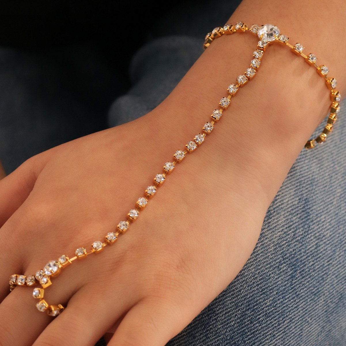 シンプルな新型の指のブレスレットの小衆はドリルの記号のドリルの手の甲を入れて欧米の新婦の手の装飾をつないでいます。