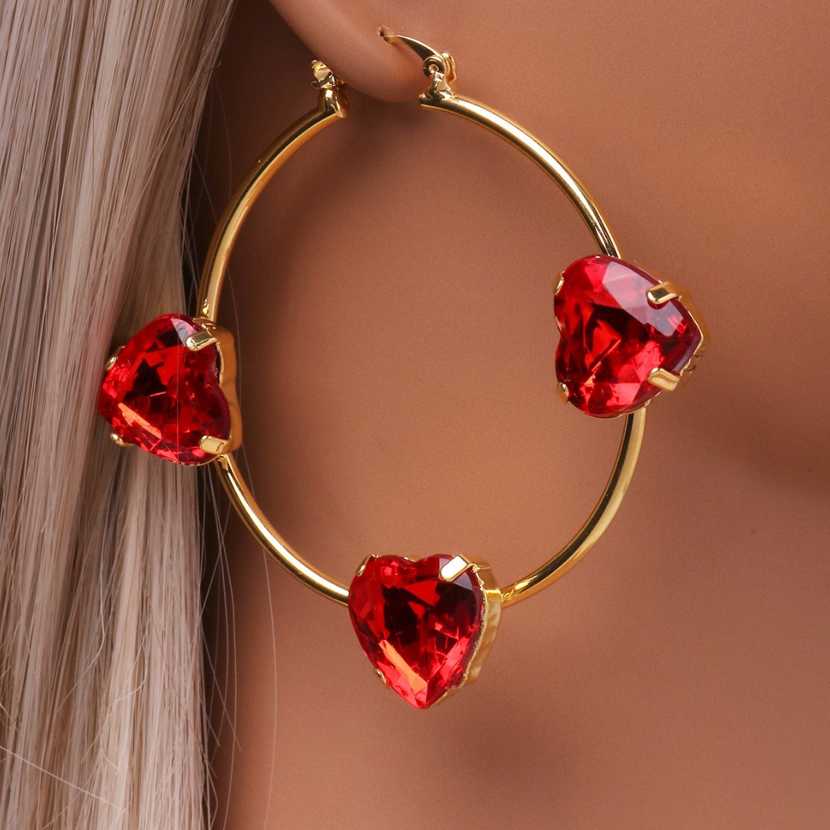 欧米の個性的なサークル形の赤い愛のイヤリングは誇張しています。