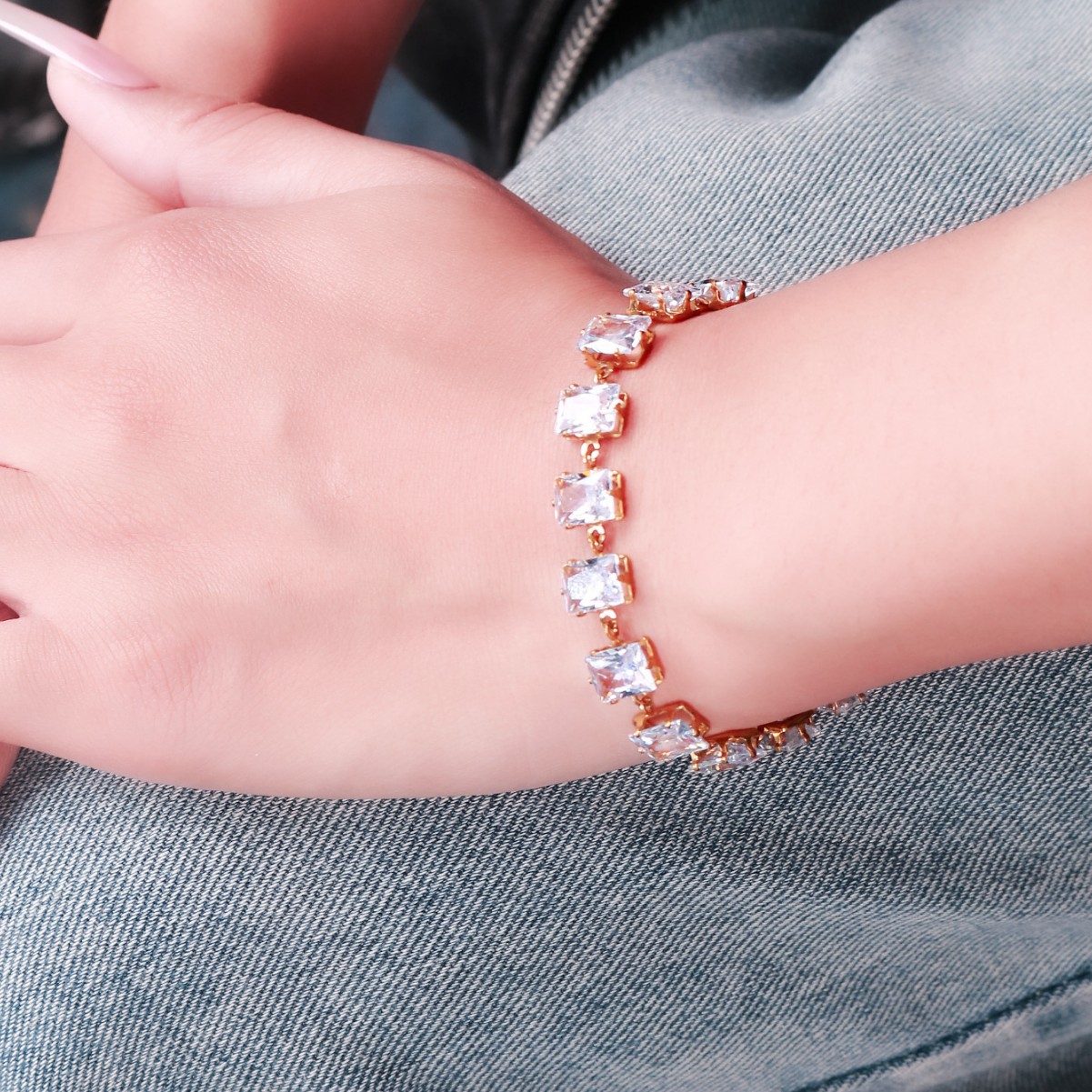 国境を越えた軽豪華な金底ジルコンのブレスレットは素朴でシンプルでキラキラしたジルコンのブレスレットはメーカーの卸売りを調節できる