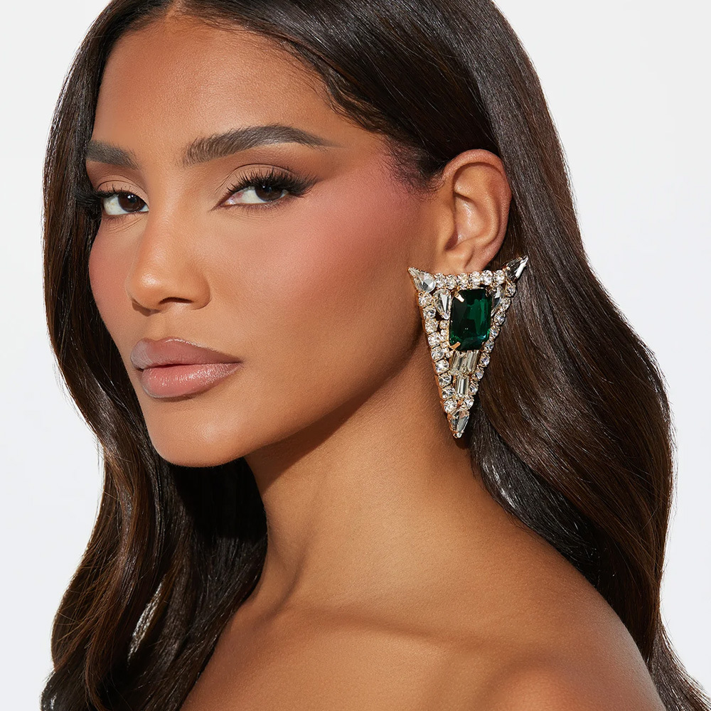 欧米の大げさなダイヤモンドの三角形の宝石のイヤリングのショーの晩餐会の装飾品のフラッシュドリルの緑のドリルのピアス