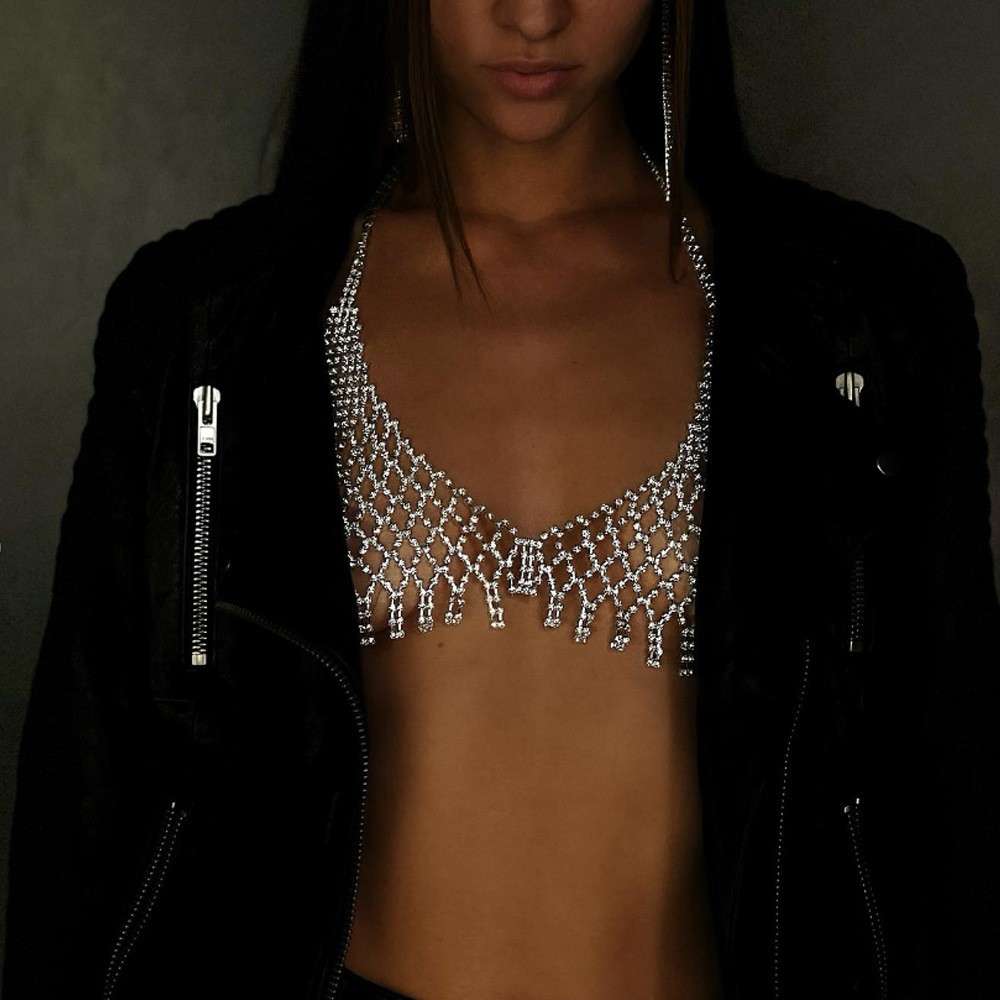 クロスボーダーのセクシーな欧米のフルドリルの胸のチェーンは胸のダイヤモンドの輝く体のチェーンの夜店の潮流の体のチェーンを拭きます。