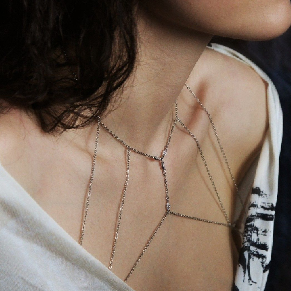 アマゾンの人気ドリルのボディチェーンヒップホップパンク多層流蘇肩鎖舞台パフォーマンスアクセサリーチェーン