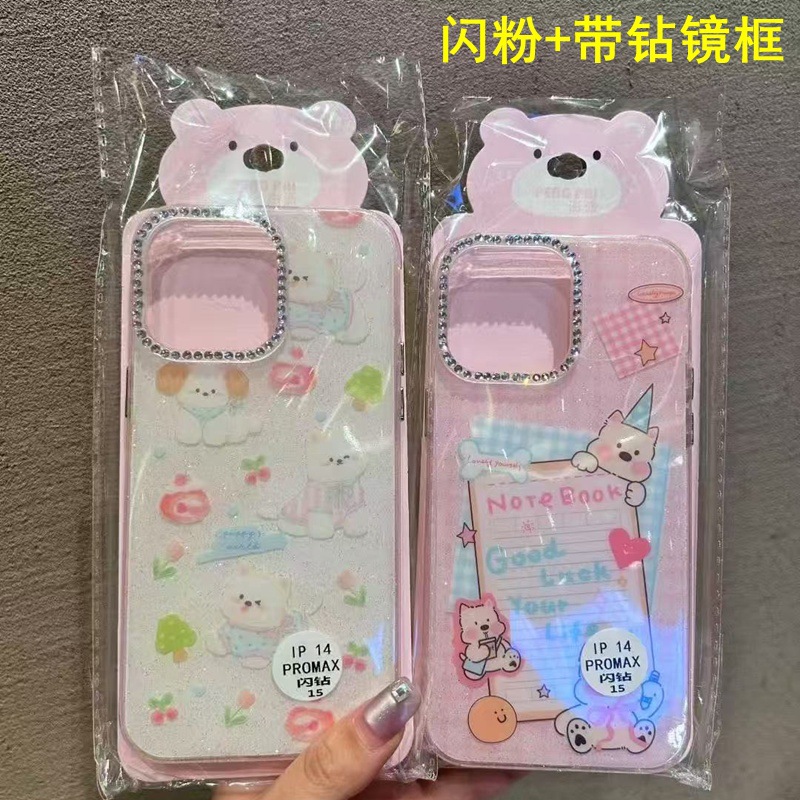 フラッシュダイヤモンド携帯電話ケース Apple 16 フラッシュパウダー漫画 iPhone15 14 レンズラインストーン保護カバー女性用