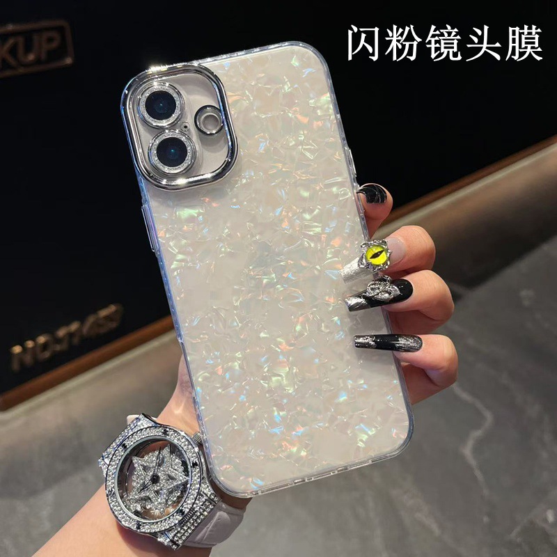 目の保護に適した Apple 16 シェルパターン携帯電話ケース iPhone15 ファッション 14 グリッターレンズフィルム保護カバー ホワイト