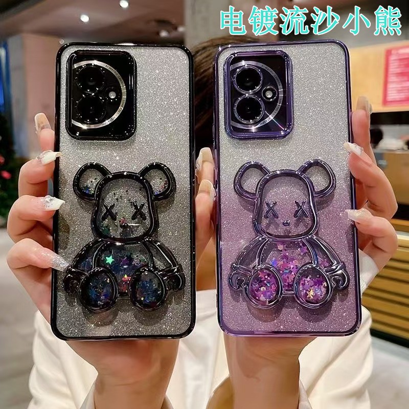 かわいい、Huawei Magic7に適した、グリッター付きスマホケース、卸売、バイオレントベア、pura80、流砂ベア、電気メッキケース、女性向け