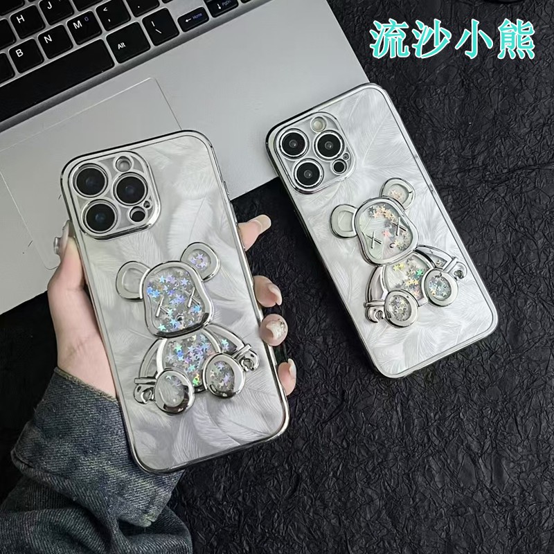 閃粉熊の電気めっきの殻は小米15/13暴力熊k 70 k 80紅米note 14流砂の携帯のケースを適用します。