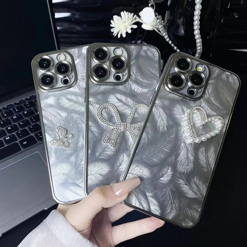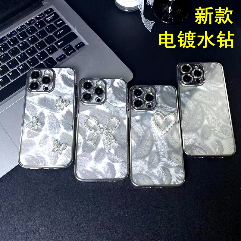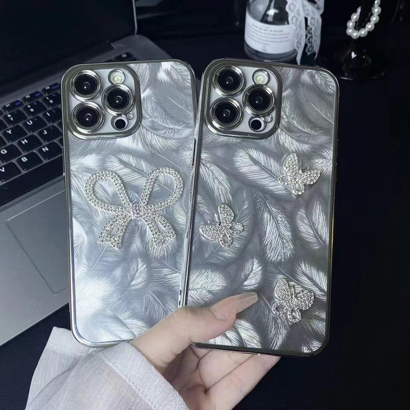 羽根の携帯のケースはアップルの15を適用して、iphone 14/13の蝶結びの電気めっきの柔らかい殻の愛の羽の糸を貼ります。