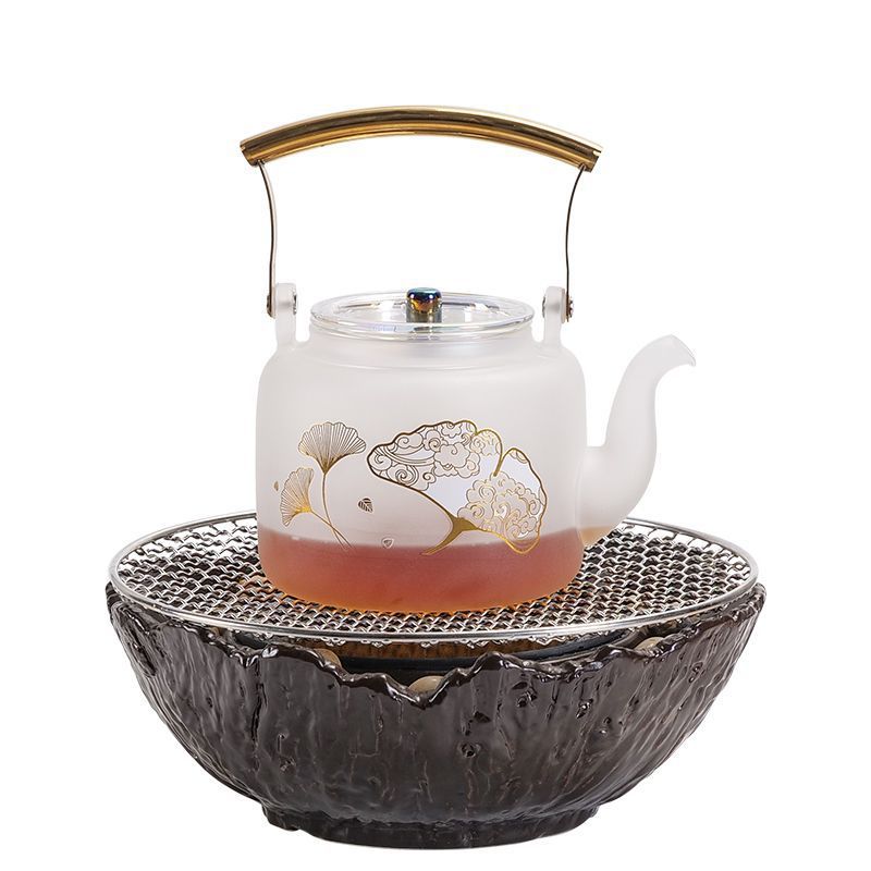 室内の囲炉裏でお茶を煮ます。家庭用の軽くて豪華なスマートな温度制御でバーベキューをします。