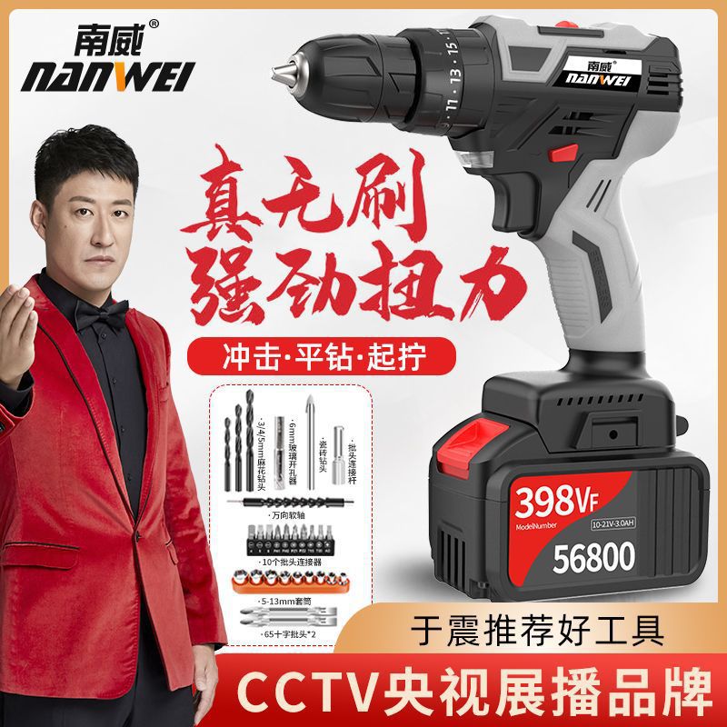 南威充電ドリル二速リチウム電気ドリル家庭用懐中電灯ドリル電動ドライバー電気回転ブラシレスインパクトドリル