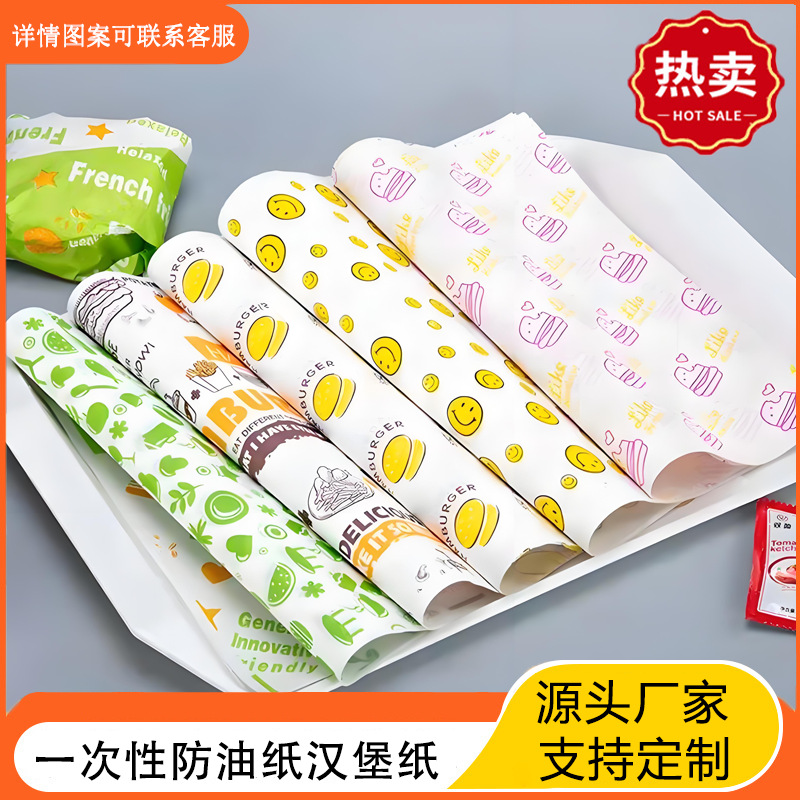 メーカー卸売りハンバーガー紙鶏肉巻き包装紙使い捨て防油食品包装紙500枚