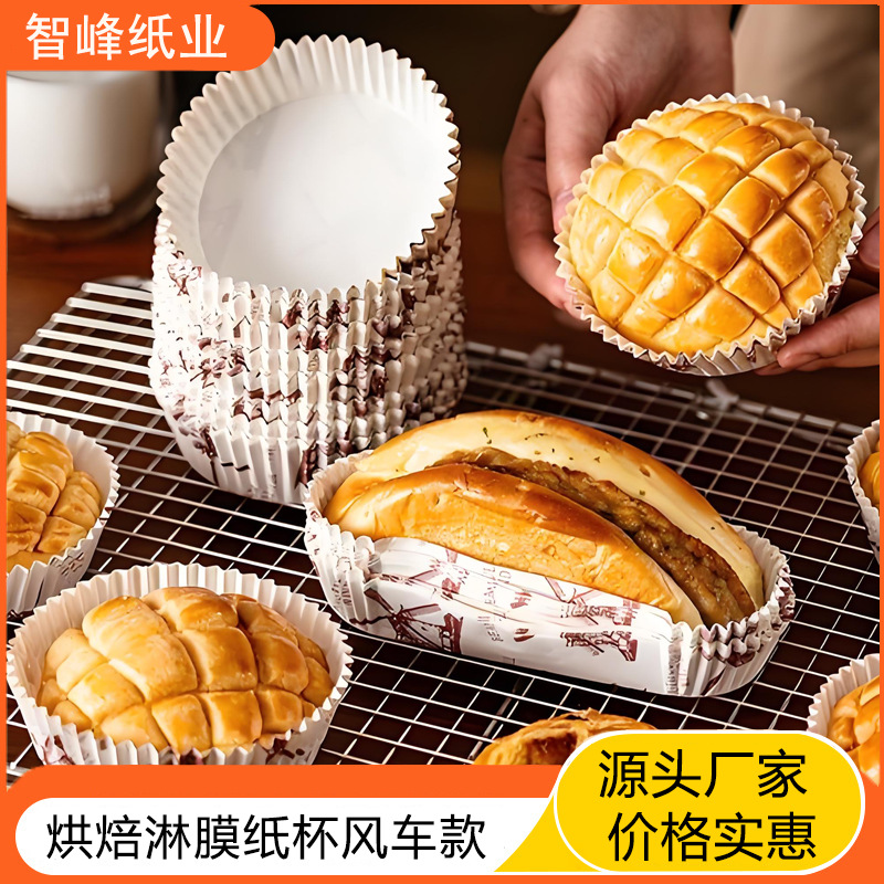 ケーキ紙コップのラミネート紙コップの高温耐焼防油型紙コップの風車コップのケーキのパンの紙は円形の船型を支えます。