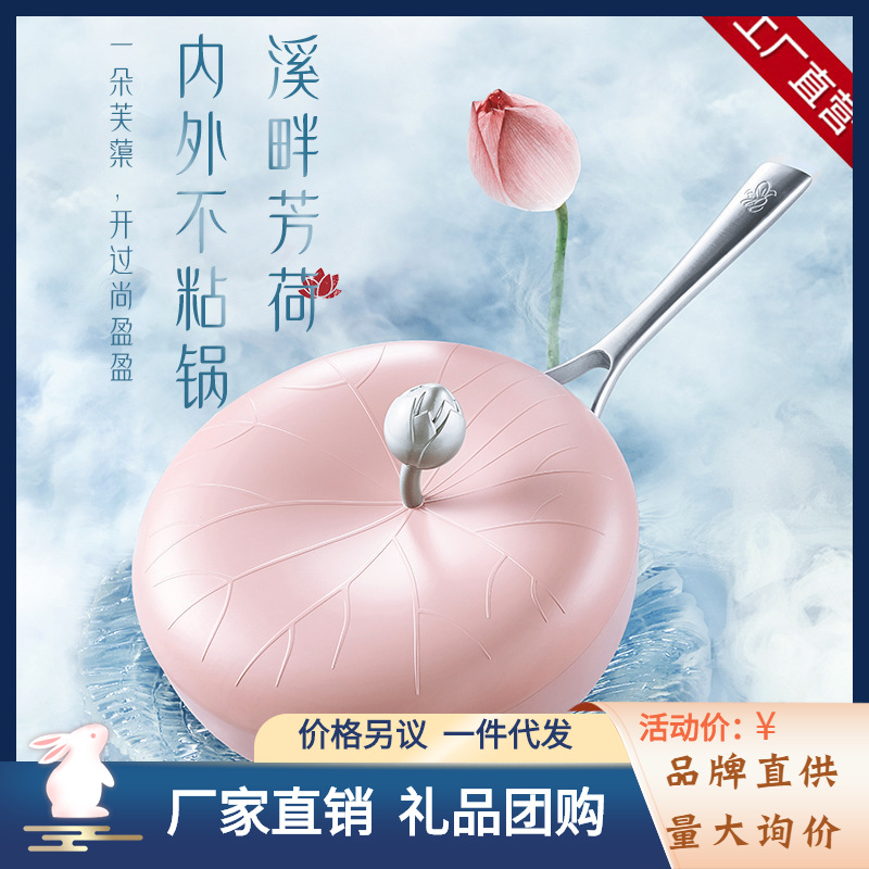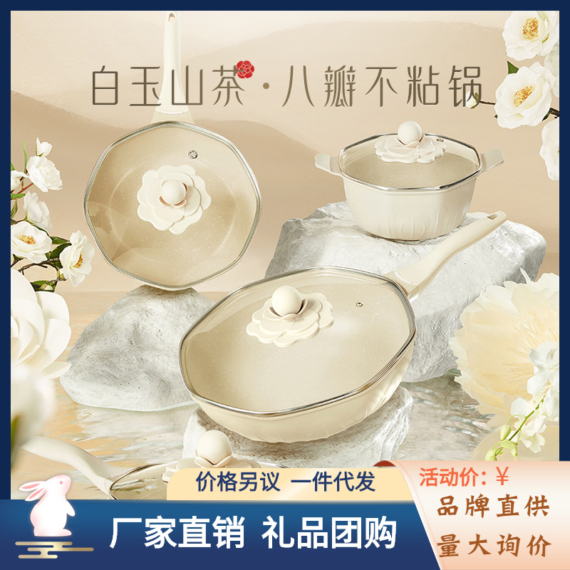 ブランド直供繁花烙白玉山茶花鍋新製品内外粘着鍋アルミ鍋東方国風鍋具